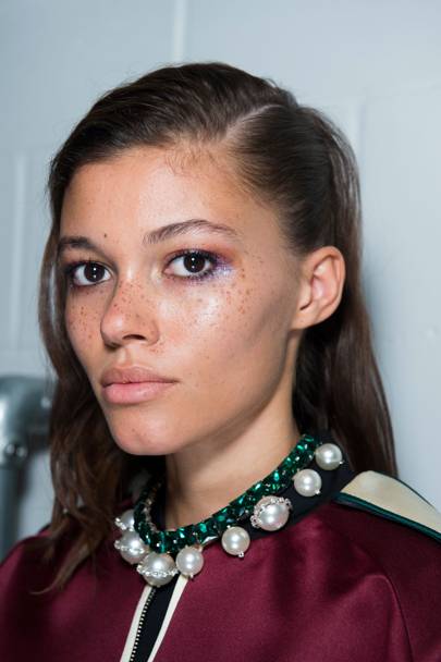 Would it really be summer make-up without some seriously bright colours on the show? Electro-pop eye make-up appeared in orange, pink and aquamarine at House of Holland, in highly-pigmented pastels at Missoni, and in blues, greens and turquoises at Marni. And that’s before we even get onto the artistic creations by Hung Vanngo at Matty Bovan. The bolder, brighter and more eye-popping, the better.